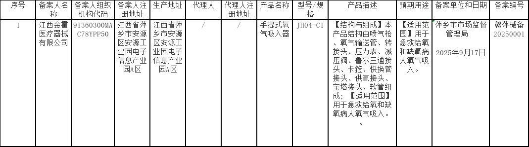 萍鄉市第一類醫療器械產品備案信息公開名單(2025年第1期)