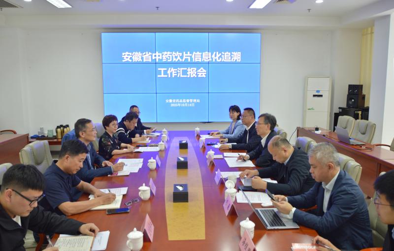 ??? 10月14日至15日,國家藥監局黨組成員、副局長楊勝帶隊來皖調研中藥飲片信息化追溯工作。安徽省藥監局局長馬旭升陪同調研。